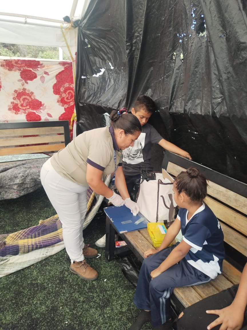 En el municipio de San Vicente Pacaya se habilitó un albergue en el campo de fútbol, donde se proporciona atención médica general a las familias, asegurando respuesta oportuna y acompañamiento continuo en este contexto de emergencia.