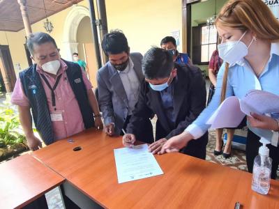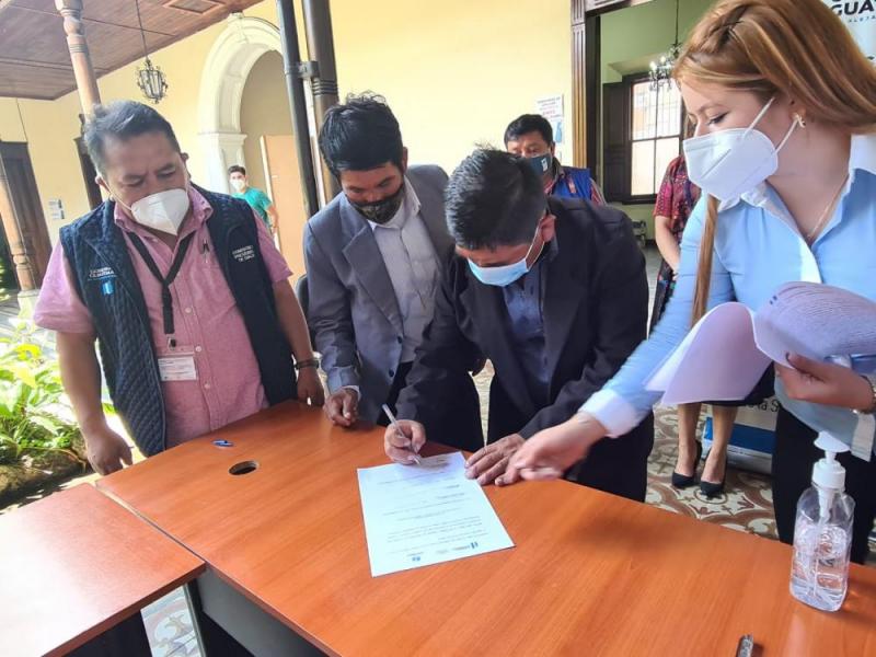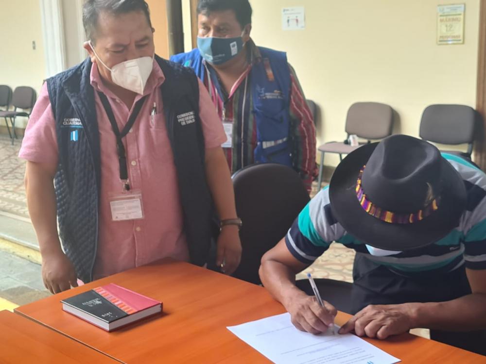 Con la participación del señor Comisionado Presidencial de Diálogo, Rodolfo Silva, representantes de la Procuraduría de los Derechos Humanos, Comisión Contra la Discriminación Indígena, Comunidad Indígena Maya Kaqchiquel y alcaldes auxiliares de la comunidad El Pilar II se realizó la firma del convenio que busca el respeto, la paz y la tranquilidad para beneficio de la población.