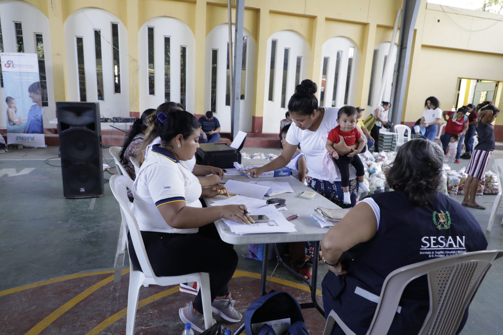 Un total de 100 familias de niños menores de cinco años de edad diagnosticados con desnutrición aguda moderada o en inseguridad alimentaria y nutricional que viven en San Agustín Acasaguastlán, El Progreso, participaron en una jornada de toma de talla y peso que realizó la Comisión Municipal de Seguridad Alimentaria y Nutricional (COMUSAN) de la localidad en coordinación con el personal de la Secretaría de Seguridad Alimentaria y Nutricional (SESAN) en el marco del programa “Creciendo Juntos”.