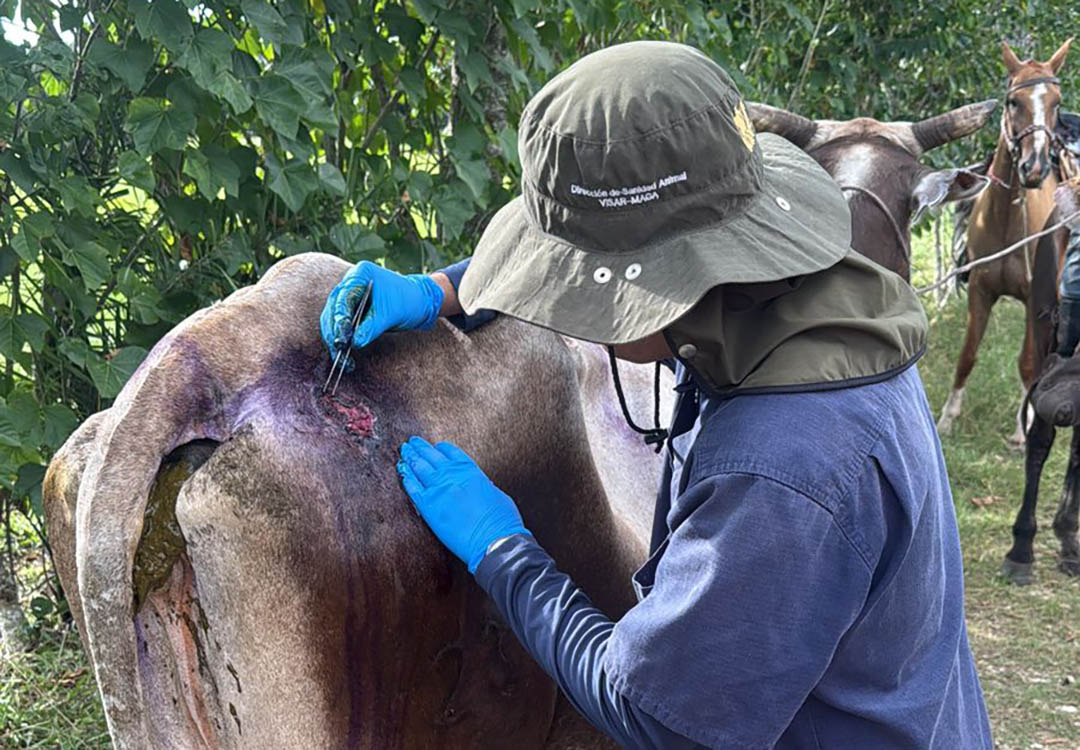 Equipos técnicos del Ministerio de Agricultura, Ganadería y Alimentación (MAGA) refuerzan acciones de inspección, tratamiento y vigilancia sanitaria para frenar la propagación del Gusano Barrenador, plaga que representa una amenaza para el hato nacional y la productividad pecuaria.
