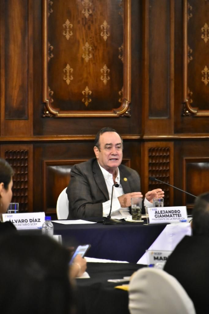 “Este año hay cambio de autoridades gubernamentales y en las municipalidades, por ello, los insto a que la meta de este año debe ser la ejecución del 100 por ciento de los fondos asignados a los Consejos de Desarrollo. Esto se traduce en desarrollo para las comunidades del país, ya que, con voluntad y compromiso, podemos decir gracias, porque se ha demostrado que se puede trabajar unidos en la ruta de desarrollo del país” expresó el presidente de la República, Alejandro Giammattei, quien coordina el Conadur.