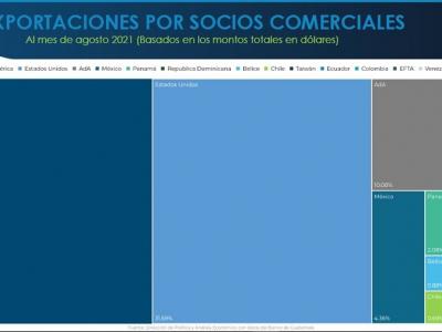 En cuanto a las importaciones, estas también subieron debido a que en terceros países también se experimentó una recuperación económica. A agosto del 2021 se experimentó una variación interanual acumulada del 43.5 por ciento, mientras que entre agosto del 2020 y agosto del 2021 hay un aumento del 60.5 por ciento.
