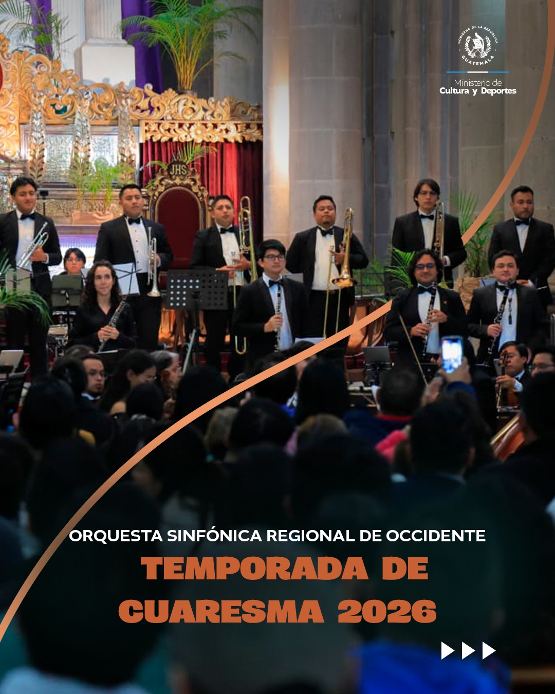 La Orquesta Sinfónica Regional de Occidente ya se prepara para continuar este recorrido musical con el segundo concierto de la Temporada de Cuaresma 2026, que este viernes 05 de marzo en el Templo El Calvario, zona 2 de Totonicapán, a partir de las 19:00 horas. La entrada es gratuita.