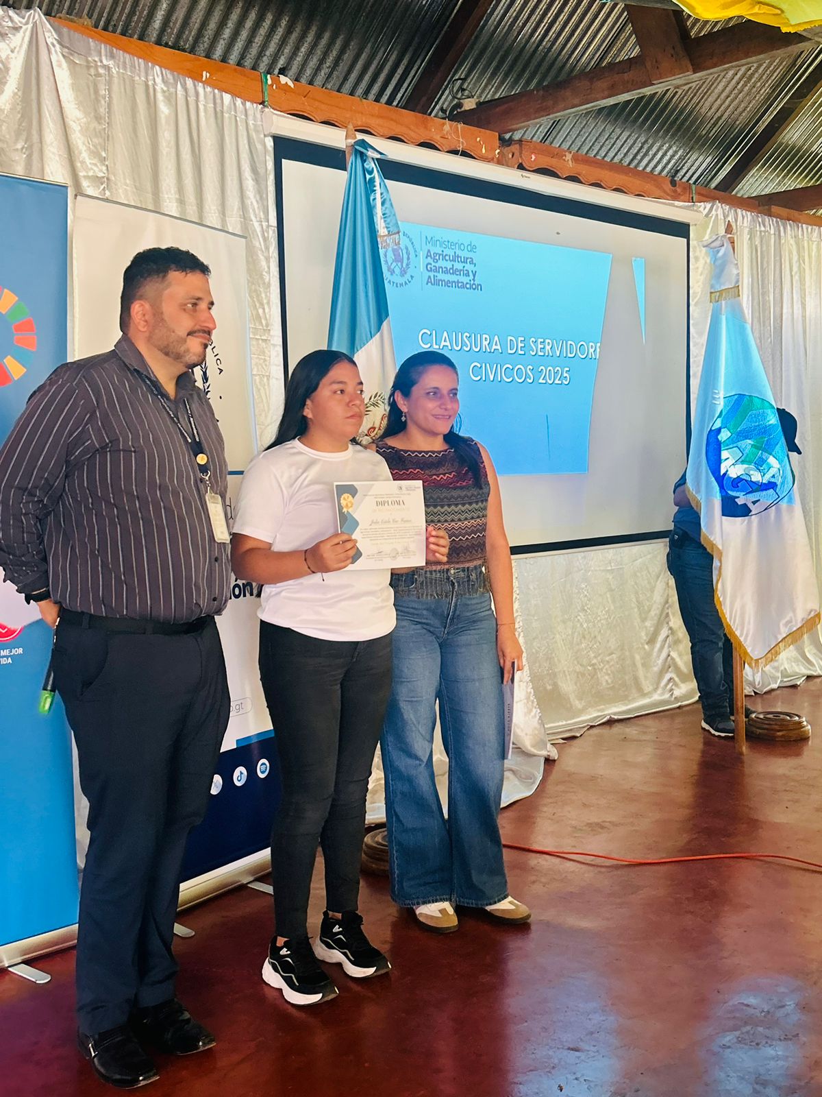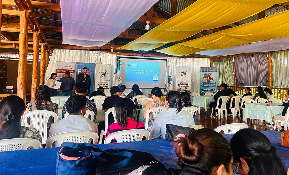 En un emotivo acto realizado en la Cooperativa Chicoj, ubicada en el municipio de Cobán, Alta Verapaz, el Ministerio de Agricultura, Ganadería y Alimentación (MAGA) efectúo el acto de clausura del programa de Servidores Cívicos 2025 correspondiente a este departamento.