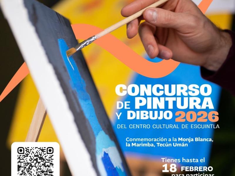 El Centro Cultural de Escuintla te invita a participar en el Concurso de Dibujo y Pintura 2026. Plasma tu creatividad y rinde homenaje a nuestros símbolos patrios: Marimba, Monja Blanca y Tecún Umán.