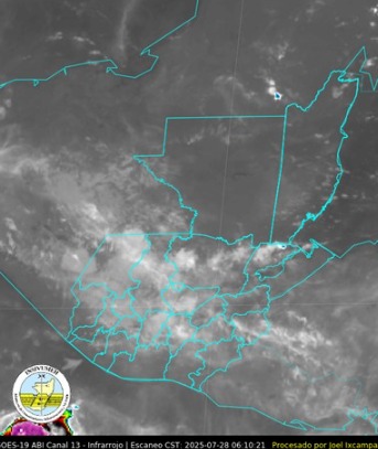 Pocas nubes alternando con nubosidad dispersa durante el período en Valles de Oriente, Altiplano Central y Norte. Aumento gradual de la nubosidad y lluvias acompañadas de actividad eléctrica en Bocacosta, Pacífico, sur de Valles de Oriente y Franja Transversal del Norte. No se descartan lluvias locales en otros sectores del país.