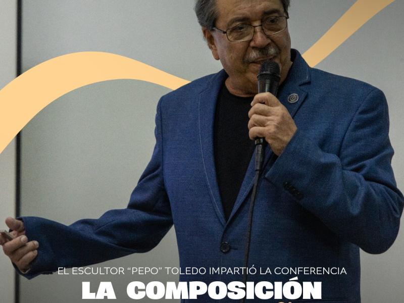 El escultor José «Pepo» Toledo impartió la conferencia “La composición en el diseño”, donde abordó principios como el equilibrio, el ritmo visual, el contraste y la proporción áurea.