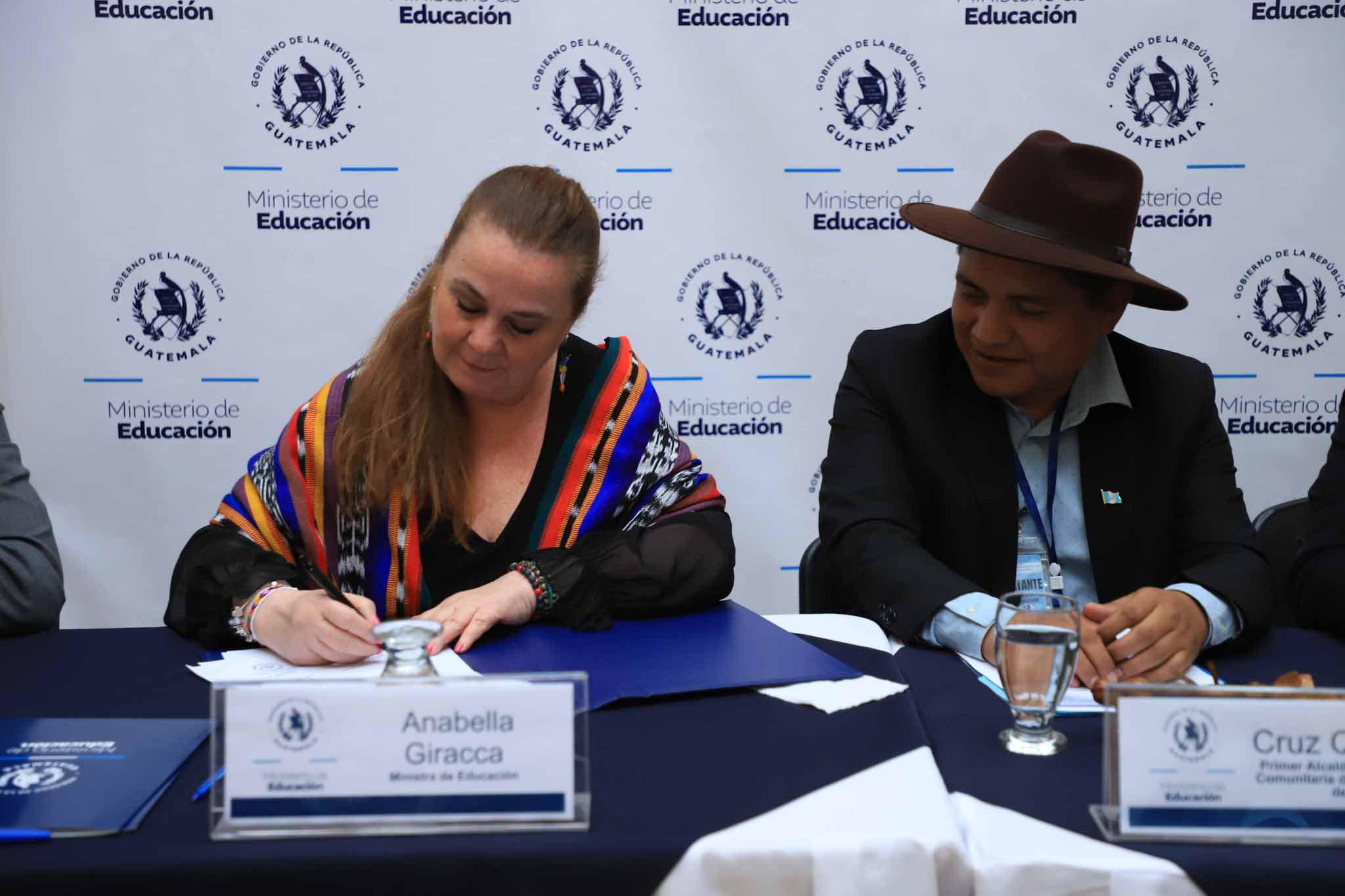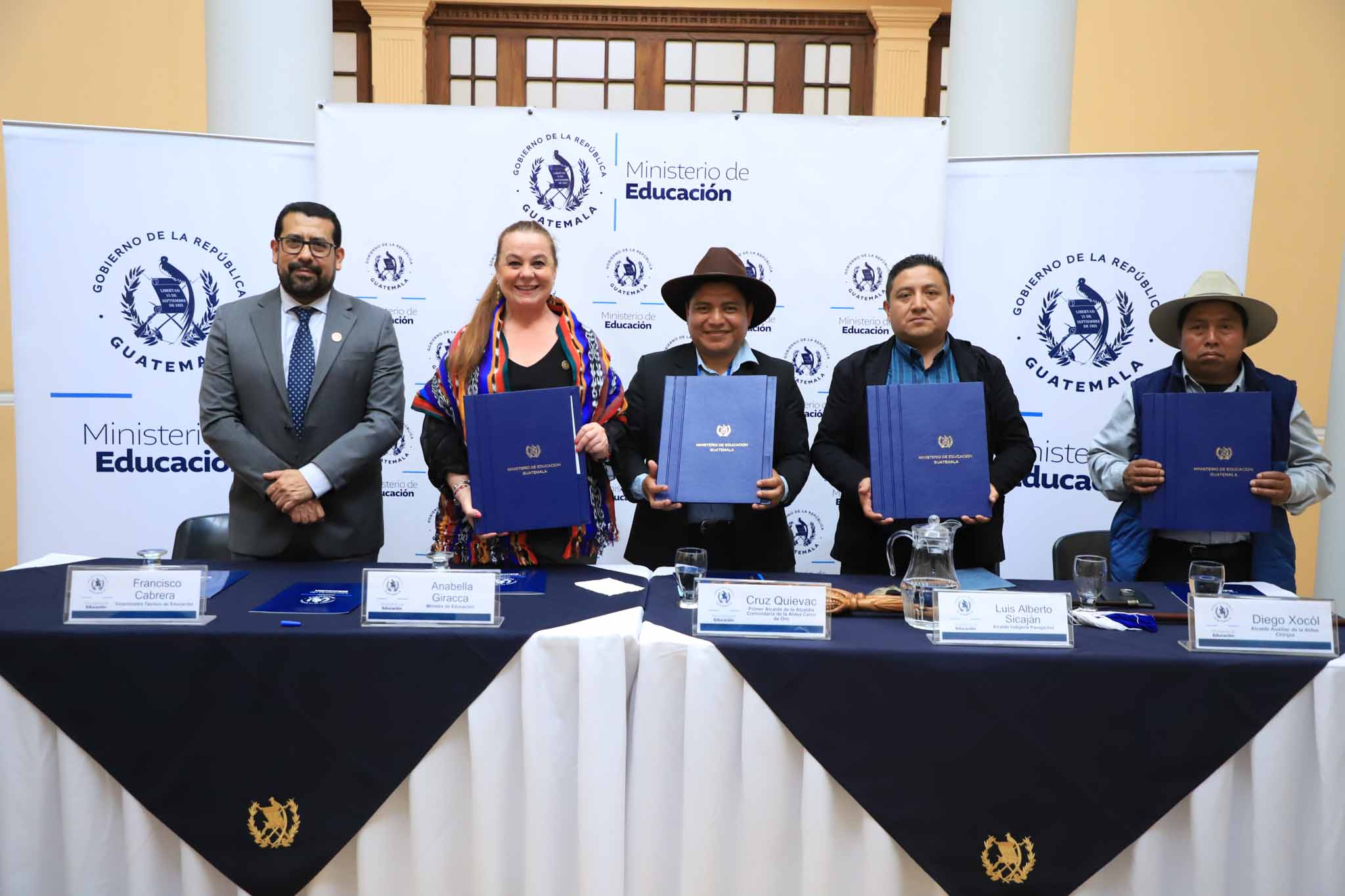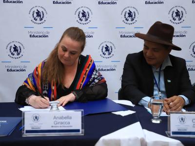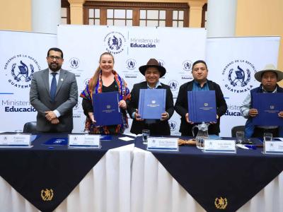 La ministra de Educación, Anabella Giracca, y autoridades indígenas de tres comunidades de Sololá confirmaron su compromiso para fortalecer la Educación Bilingüe e Intercultural (EBI) en ese departamento.
