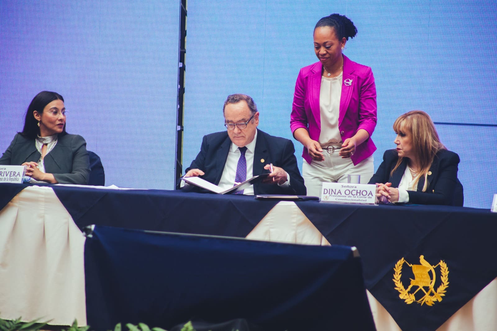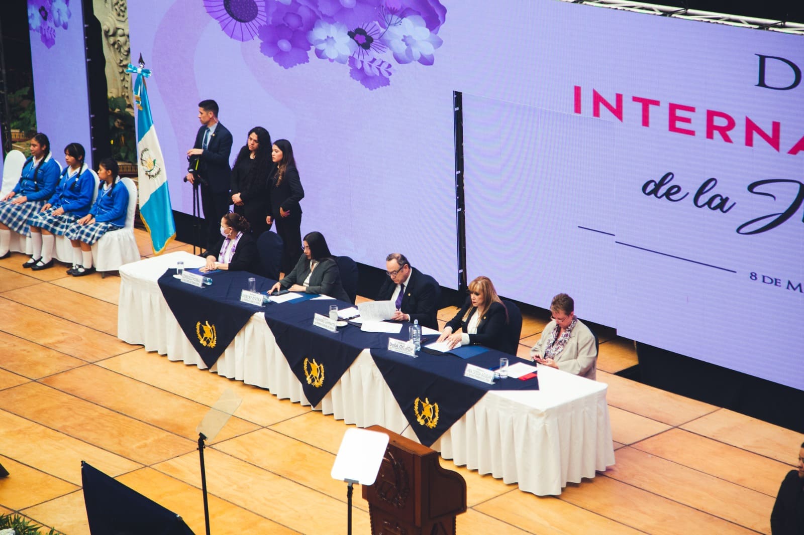 Esta actividad fue presidida por el Señor Presidente de la República, la Presidente Congreso de la República, la Presidenta de la Corte de Constitucionalidad (CC), la Fiscal General de la República y Jefa del Ministerio Público y la Secretaría Presidencial de la Mujer.