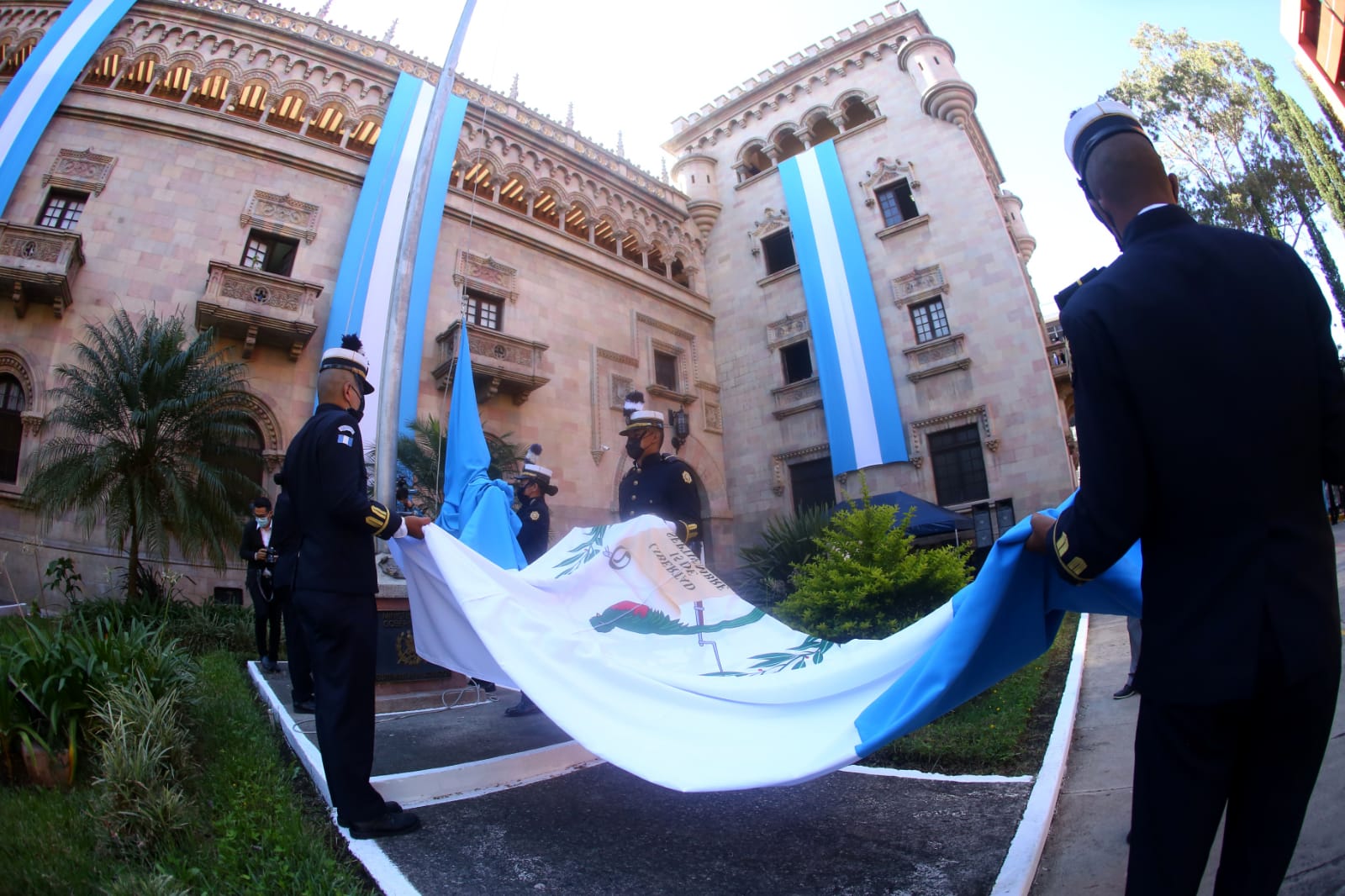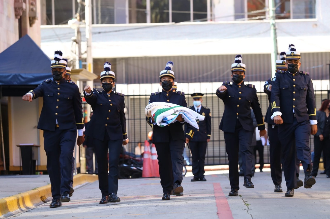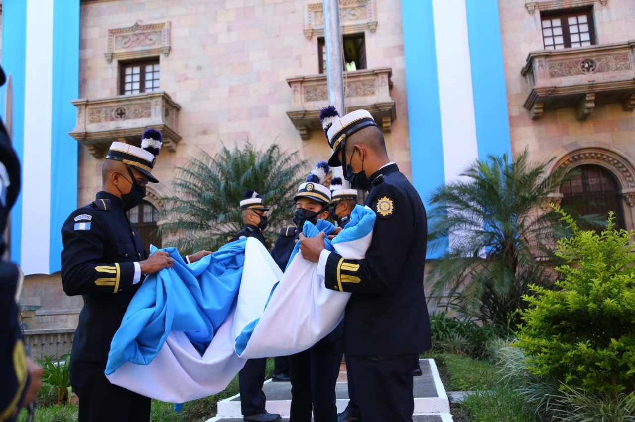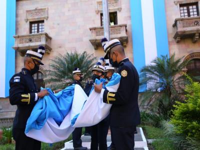 Como parte de la celebración del Bicentenario de la Independencia Patria, en el Ministerio de Gobernación, transeúntes de la Sexta Avenida, personal policial, se dieron cita para conmemorar un acontecimiento único y trascendental.
