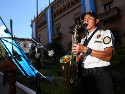 Luego durante el resto de la mañana se pudo apreciar el ritmo y sonido de la marimba Kaibil Balam símbolo del Ministerio de Gobernación y el Combo Policial, para deleitar con su especial sabor tropical el importante acto.