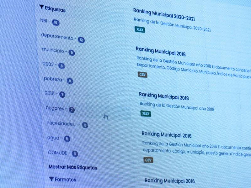 Actualmente, las bases de datos contenidas en el portal son los rankings municipales, índices de necesidades básicas insatisfechas, mapas de pobreza, desembolsos de la cooperación internacional, listado de beneficiarios del Fideicomiso Nacional de Becas y Crédito Educativo, proyectos de inversión pública, procesos de opinión técnica y reporte de proyectos de cooperación, entre otros.