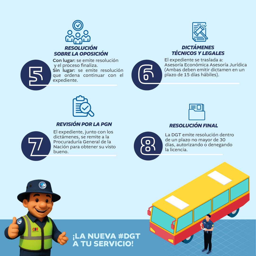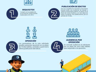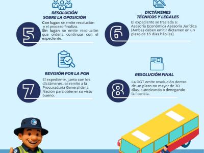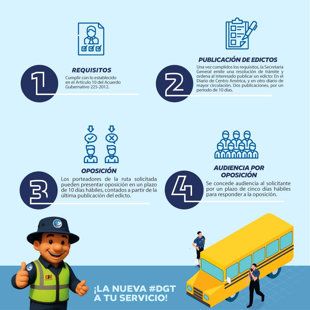 La Dirección General de Transportes pone a tu dispocición esta infografía para que conozcas cuál es el proceso o la ruta a seguir en el trámite de obtención de una nueva licencia para transporte extraurbano, según el artículo 10 del acuerdo gubernativo 225-2012.