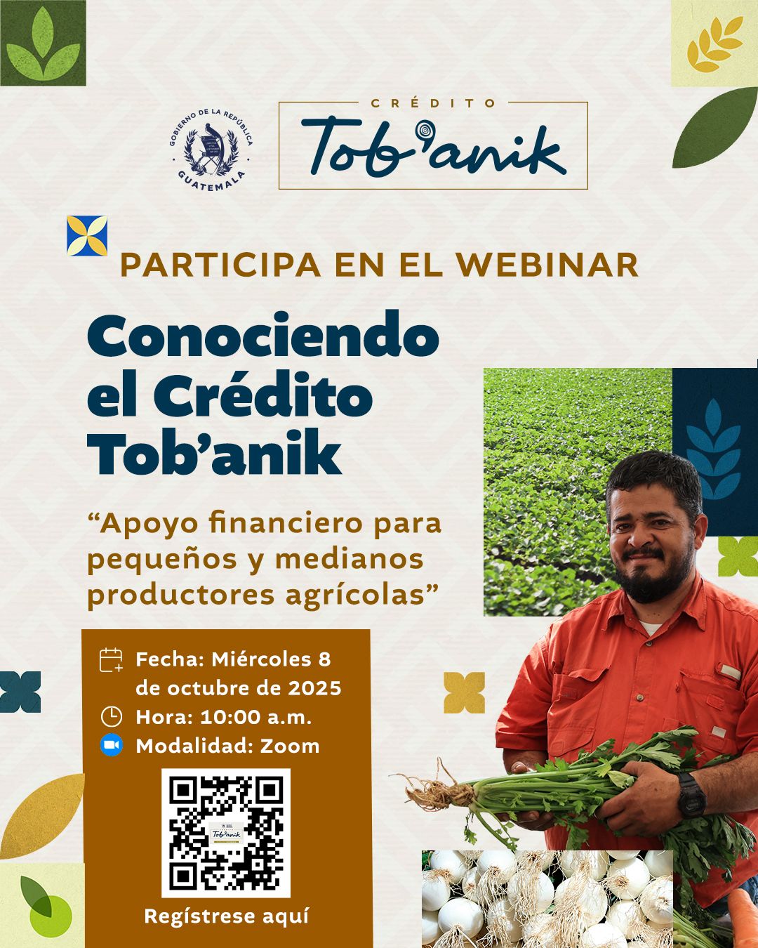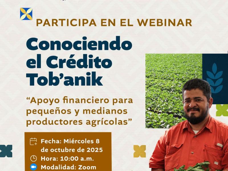 Esto y más podrá descubrirlo en el Webinar (seminario virtual) “Conociendo el Crédito Tob’anik”, un espacio en el que podrá conocer de primera mano los beneficios, requisitos y oportunidades que ofrece este programa, así como el proceso para acceder este importante apoyo financiero.