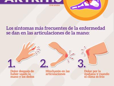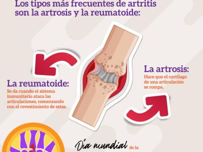 El 12 de octubre se conmemora el Día Mundial de la Artritis Reumatoide, fecha que institucionalizó la Arthritis Rheumatism International desde 1996. El objetivo de esta organización era educar a las personas sobre las enfermedades reumáticas y músculo esqueléticas,así como promover una mejor calidad de vida y tratamientos para aquellos que las padecen.