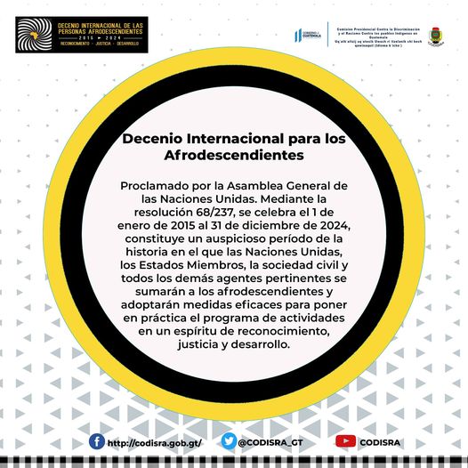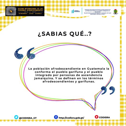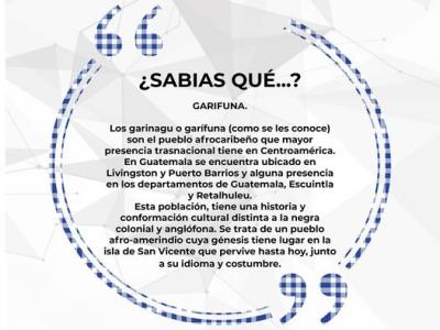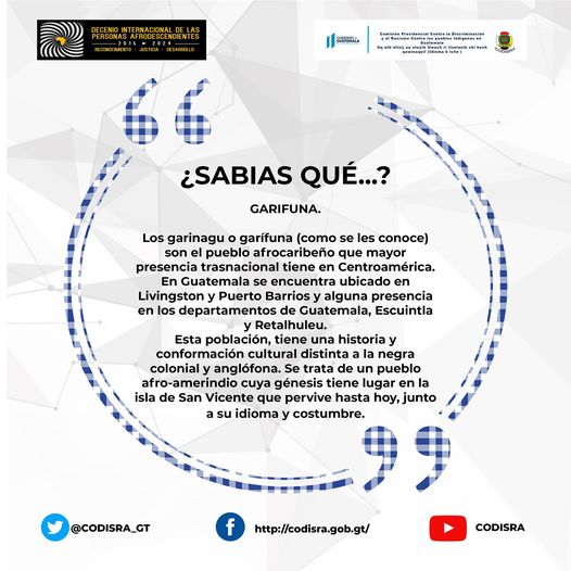 Campaña la cual tiene como objetivo conocer más respeto a la cultura del pueblo Garífuna en Guatemala y su historia, para enaltecer la composición pluricultural del país, el Congreso de la República, a través del Decreto Legislativo 83-96 aprobado en octubre de 1996, declara cada 26 de noviembre como Día de Nacional del Garífuna.