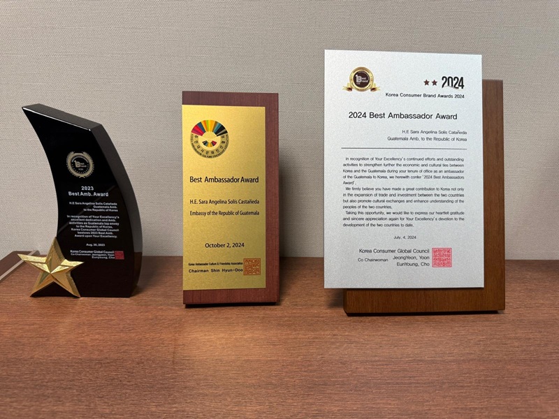 Durante la ceremonia de entrega, la Embajadora Solís expresó que este premio representa, además de un honor personal, el reflejo del esfuerzo colectivo del equipo de la Embajada de Guatemala en Corea del Sur. Agradeció también el compromiso, profesionalismo y dedicación de cada colaborador, destacando que este reconocimiento también les pertenece.