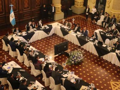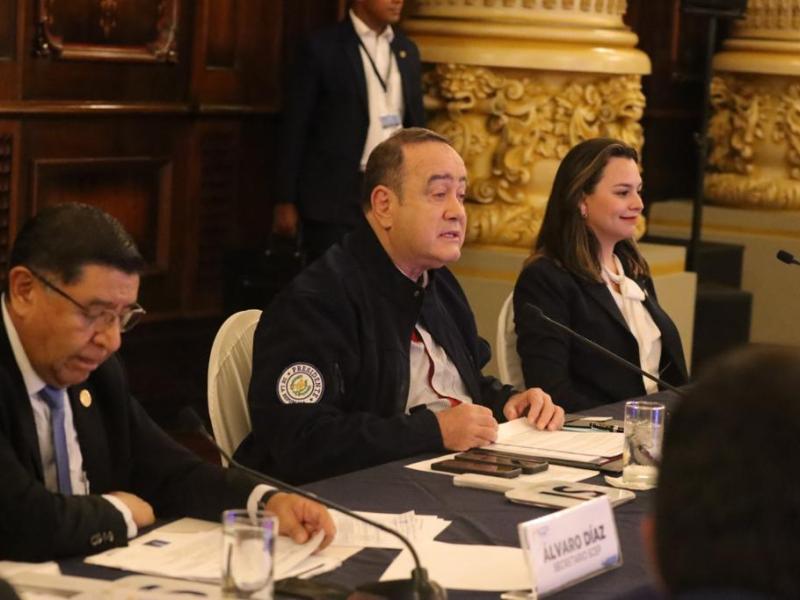 Guatemala, 5 de mayo de 2023. El presidente de la República, Alejandro Giammattei, coordinó la segunda reunión ordinaria del Consejo Nacional de Desarrollo Urbano y Rural (Conadur), en la que se presentó la propuesta de montos preliminares para 2024, la cual asciende a más de Q3 mil 376 millones.