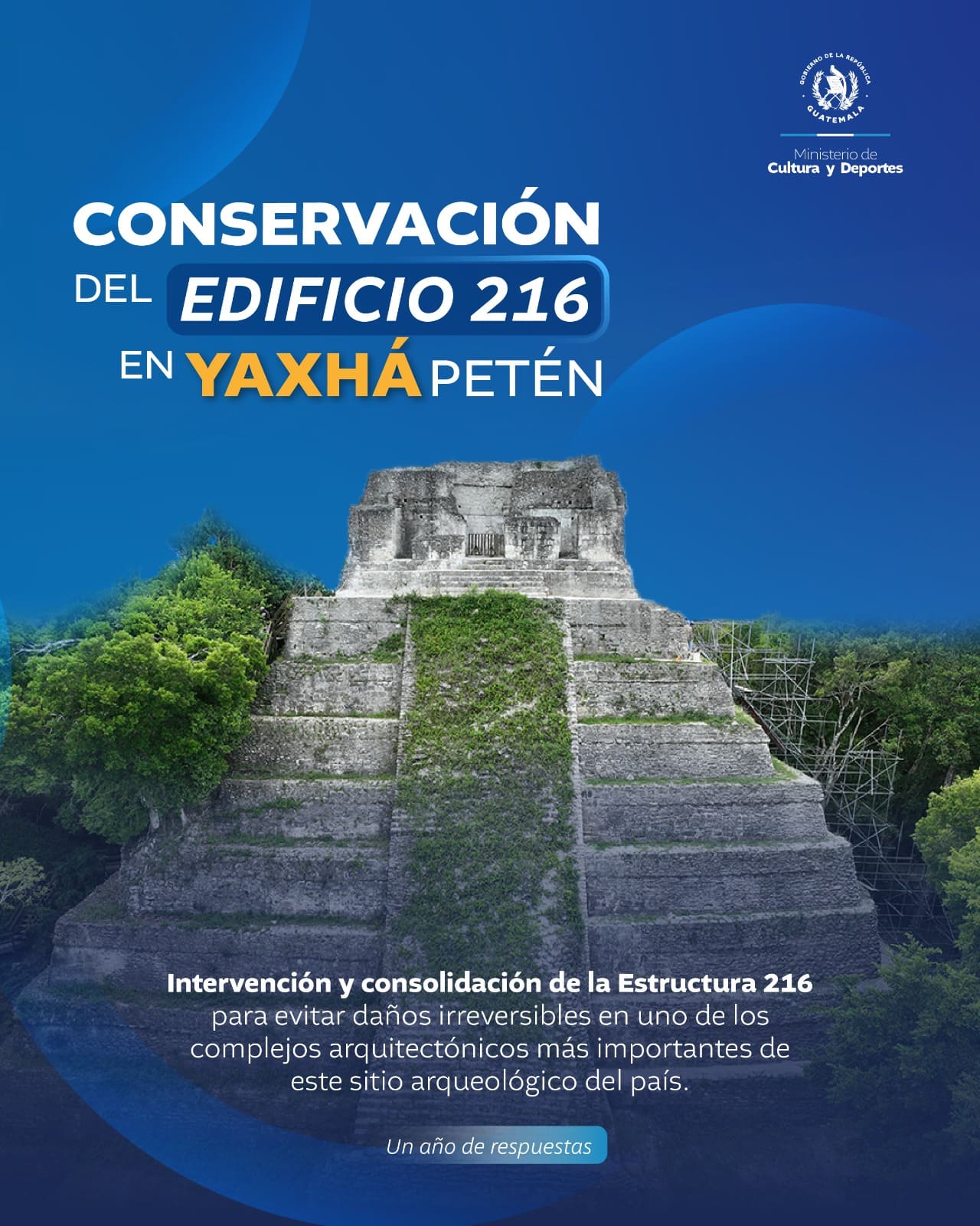 La conservación del Edificio 216 en Yaxhá, Petén, fortalece la protección del patrimonio arqueológico nacional que forma parte de nuestra identidad.