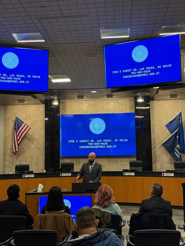 Las Vegas, EE. UU., 20 de febrero de 2026. El Consulado General de Guatemala en Las Vegas, Nevada, Estados Unidos, sostuvo una productiva reunión de trabajo con autoridades de la Alcaldía de Reno —ciudad de Nevada—, la Universidad de Reno, así como con medios de comunicación, líderes de la comunidad hispana y con la comunidad guatemalteca.