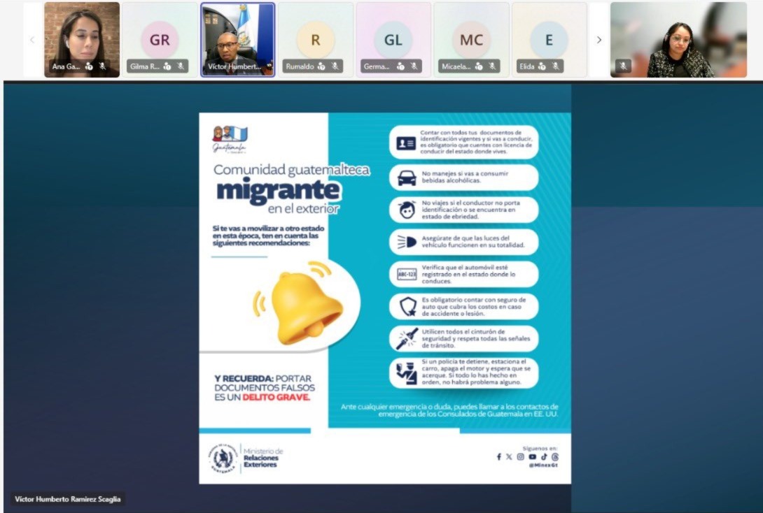 Con estas acciones, el Ministerio de Relaciones Exteriores reafirma su compromiso de informar, orientar y acompañar a los connacionales, fortaleciendo la atención consular y el apoyo a la comunidad guatemalteca en el exterior.