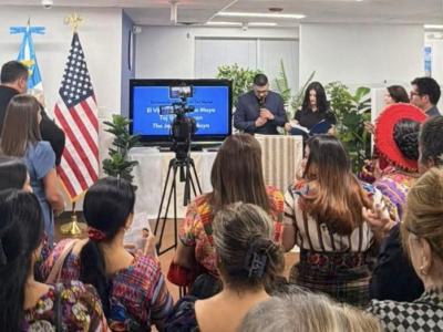 Maryland, EE. UU., 29 de abril de 2026. El Consulado General de Guatemala en Maryland realizó una recepción para la develación del mural “Toj tb’e qchman – El Viaje del Tiempo Maya”, obra del artista guatemalteco Ubaldo Sánchez.