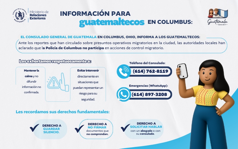 El Consulado General de Guatemala en Columbus permanece atento al desarrollo de la situación y reitera su compromiso de brindar orientación y acompañamiento consular a nuestros connacionales.