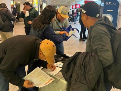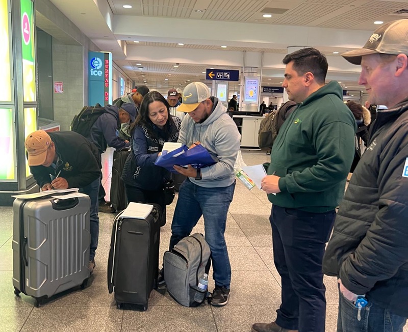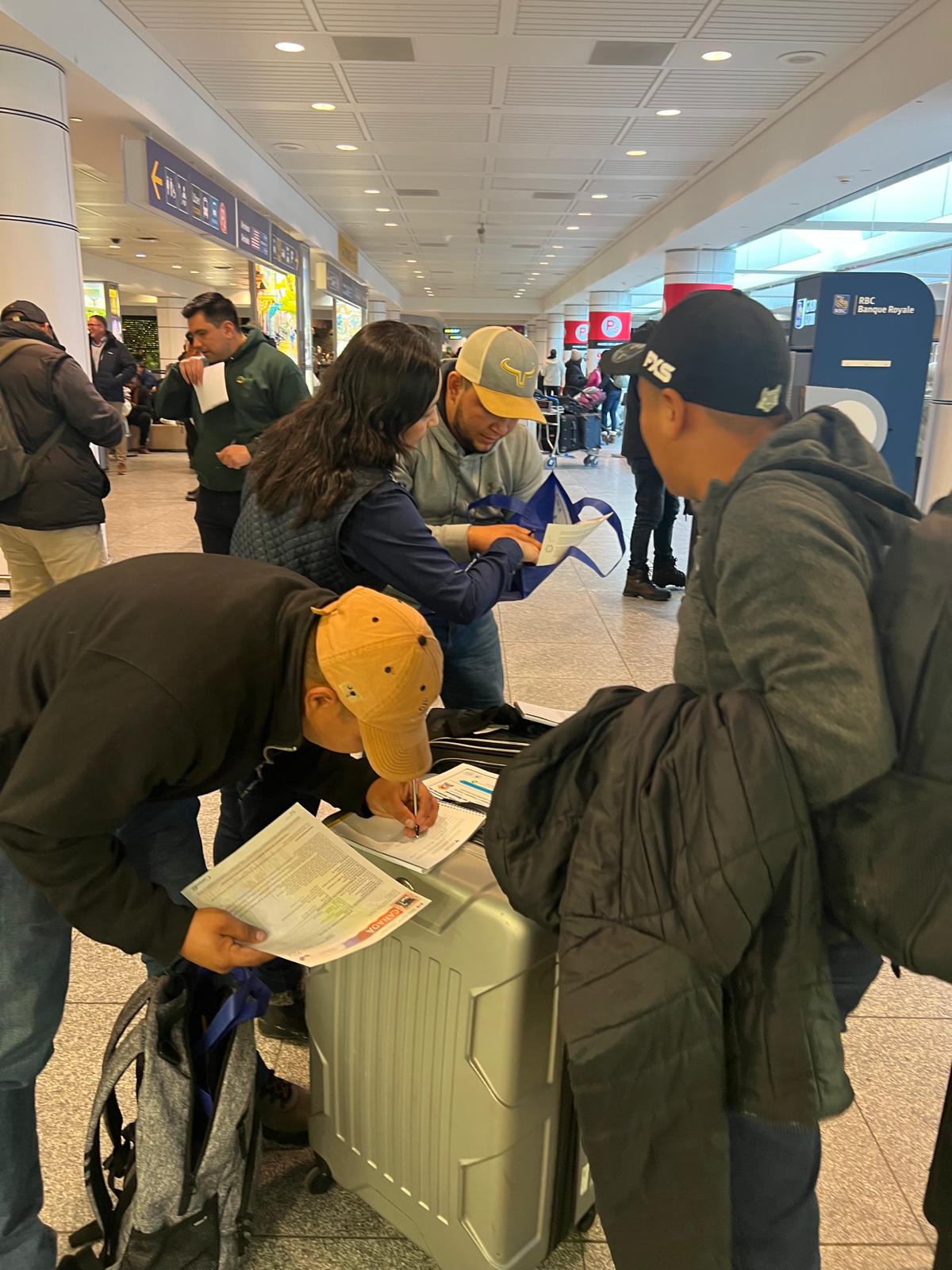 Montreal, Canadá, 17 de febrero de 2025. Personal del Consulado General de Guatemala en Montreal, Canadá, asistió a un grupo de trabajadores temporales de nuestro país a su llegada a esa ciudad, quienes laborarán en el sector agrícola.