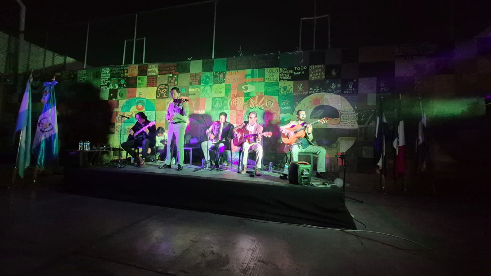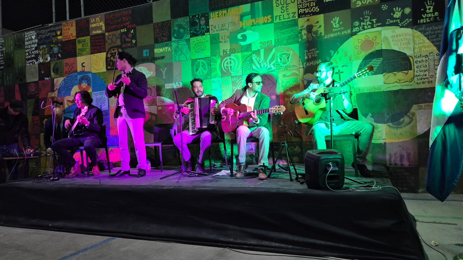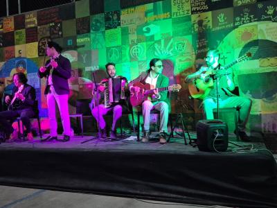 El evento, denominado "Sangre de Coyote, semilla que florece el barrio, semilla y flor para La Casa del Migrante", contó con la presentación de la agrupación musical potosina Sangre de Coyote, que interpretó clásicos de la música popular mexicana, tango, klezmer y música balcánica.