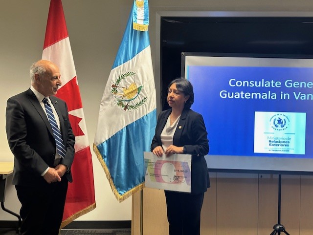 Con la colaboración del Consulado General de Guatemala en Vancouver para la entrega de este donativo, el Gobierno de la República reafirma su compromiso de promover la cooperación para el beneficio de Guatemala y su entorno, al tiempo que se avanza en consolidar las relaciones diplomáticas y culturales con el resto del mundo.
