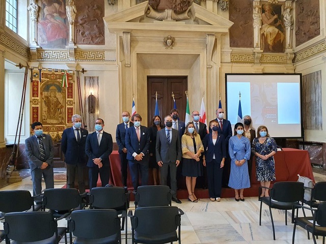 Milán, Italia, 14 de septiembre de 2021. Los países centroamericanos conmemoraron este martes el Bicentenario de su Independencia en un acto oficial en la Comune di Milano (Municipalidad de Milán), actividad en la que participó la vicealcaldesa de la ciudad, Anna Scavuzzo, el Cuerpo Consular acreditado en dicha urbe italiana e invitados especiales.
