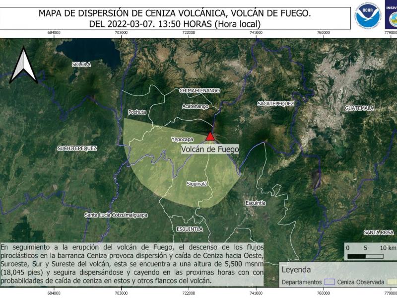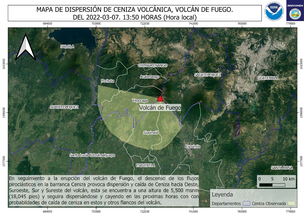 En seguimiento a la erupción del volcán de Fuego, el Instituto Nacional de Sismología, Vulcanología, Meteorología e Hidrología -INSIVUMEH- informó, por medio de su boletín vulcanológico especial #009-2022, que, continúa el descenso de flujos piroclásticos en la barranca Ceniza.