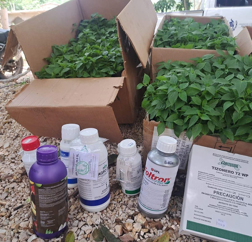 Además, en el caserío Sehamay, el personal de la Agencia Municipal de Extensión Rural (AMER), en coordinación con personal de DAGRO, entregaron 2,400 pilones de chile cobanero para la creación de una parcela demostrativa.