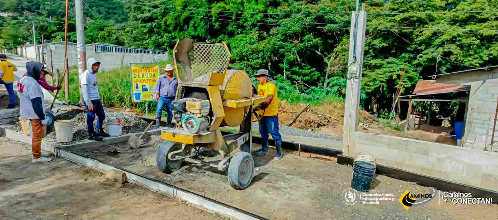 El Ministerio de Comunicaciones, Infraestructura y Vivienda (CIV), a través de la Zona Vial 14 de la Dirección General de Caminos, continúa con los trabajos de pavimentación en el kilómetro 141 de la ruta CR-BVE-03, en el tramo que conecta con la ruta departamental RD-BV-05, en el caserío El Cacao, municipio de San Jerónimo, Baja Verapaz.
