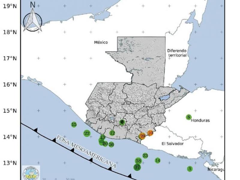 De acuerdo con la información del Instituto Nacional de Sismología, Vulcanología, Meteorología e Hidrología -INSIVUMEH- en su boletín sismológico emitido la mañana del miércoles 27 de octubre, se han registrado 19 sismos en el departamento de Jutiapa durante las últimas horas, tomando en cuenta que 8 de estos se reportaron como sensibles.