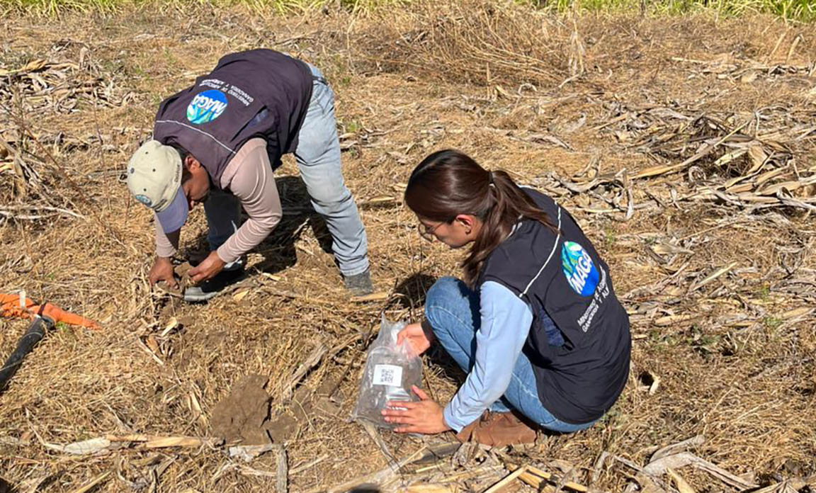 En cada sitio se recolectan hasta ocho muestras diarias, las cuales son enviadas al laboratorio nacional para su análisis físico y químico, con el fin de determinar características del suelo que permitan orientar de mejor manera el uso de fertilizantes y las prácticas agrícolas.