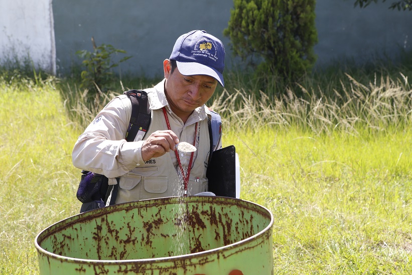 Walter Lemus, trabajador de la Unidad de Vectores del MSPAS, expresó que la aplicación de larvicida es para impedir tanto la multiplicación de insectos infectados que perjudican la salubridad como la contaminación de ambientes en los cuales viven y desarrollan sus actividades las personas.