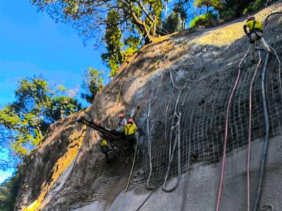 En el kilómetro 11.5, punto donde ocurrió un derrumbe de grandes proporciones, se registra un avance del 90% en la introducción de anclajes y en el recubrimiento de concreto.