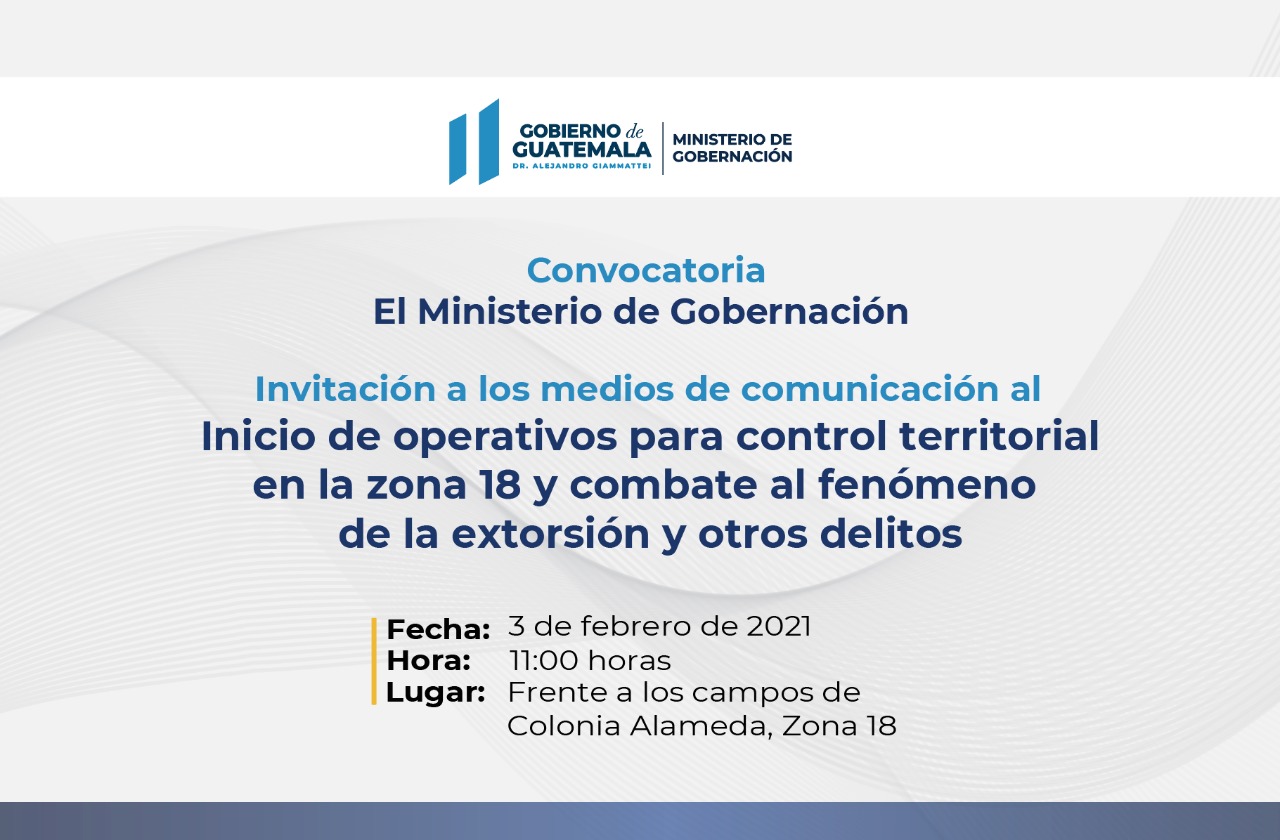 El Ministerio de Gobernación invita a los medios de comunicación al inicio de operativos para control territorial en la zona 18 de la ciudad capital.