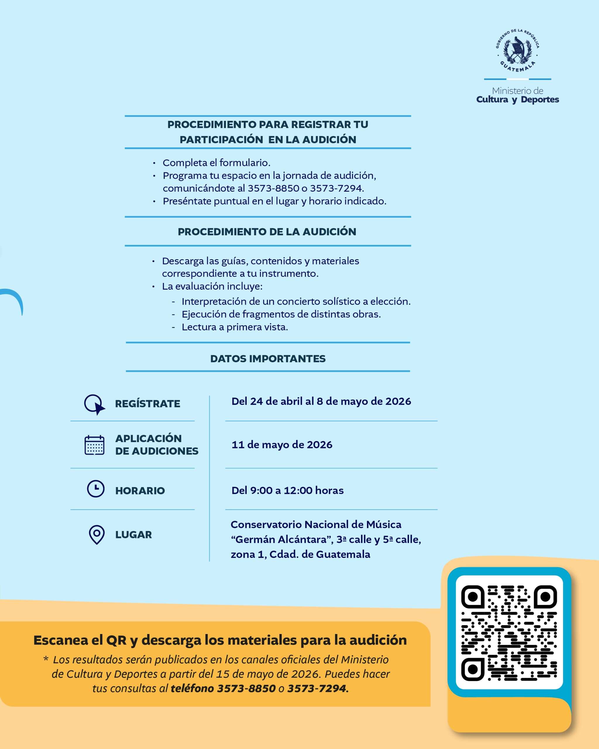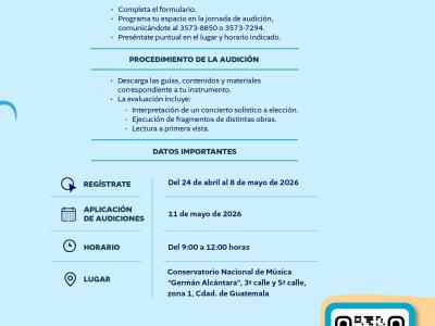 Ingresa aquí para acceder a los recursos y contenidos necesarios para tu audición: https://mcd.gob.gt/?page_id=13503