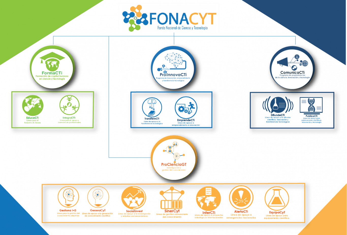 Para promover el desarrollo y la divulgación científica, tecnológica y de innovación (CTi) en Guatemala, la Secretaría Nacional de Ciencia y Tecnología (Senacyt) pone a disposición de los ciudadanos financiamiento del Fondo Nacional de Ciencia y Tecnología (Fonacyt) para educación, investigación, apoyo a emprendimientos de base científico-tecnológico, transferencia de conocimiento y divulgación de investigaciones o eventos de CTi.