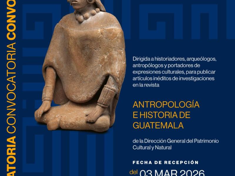 El Ministerio de Cultura y Deportes (MCD), a través de la Dirección General del Patrimonio Cultural y Natural, abrió la convocatoria para que expertos puedan publicar sus investigaciones en la revista especializada Antropología e Historia de Guatemala, un espacio académico dedicado a difundir estudios que contribuyen al conocimiento del Patrimonio Cultural Tangible e Intangible del país.