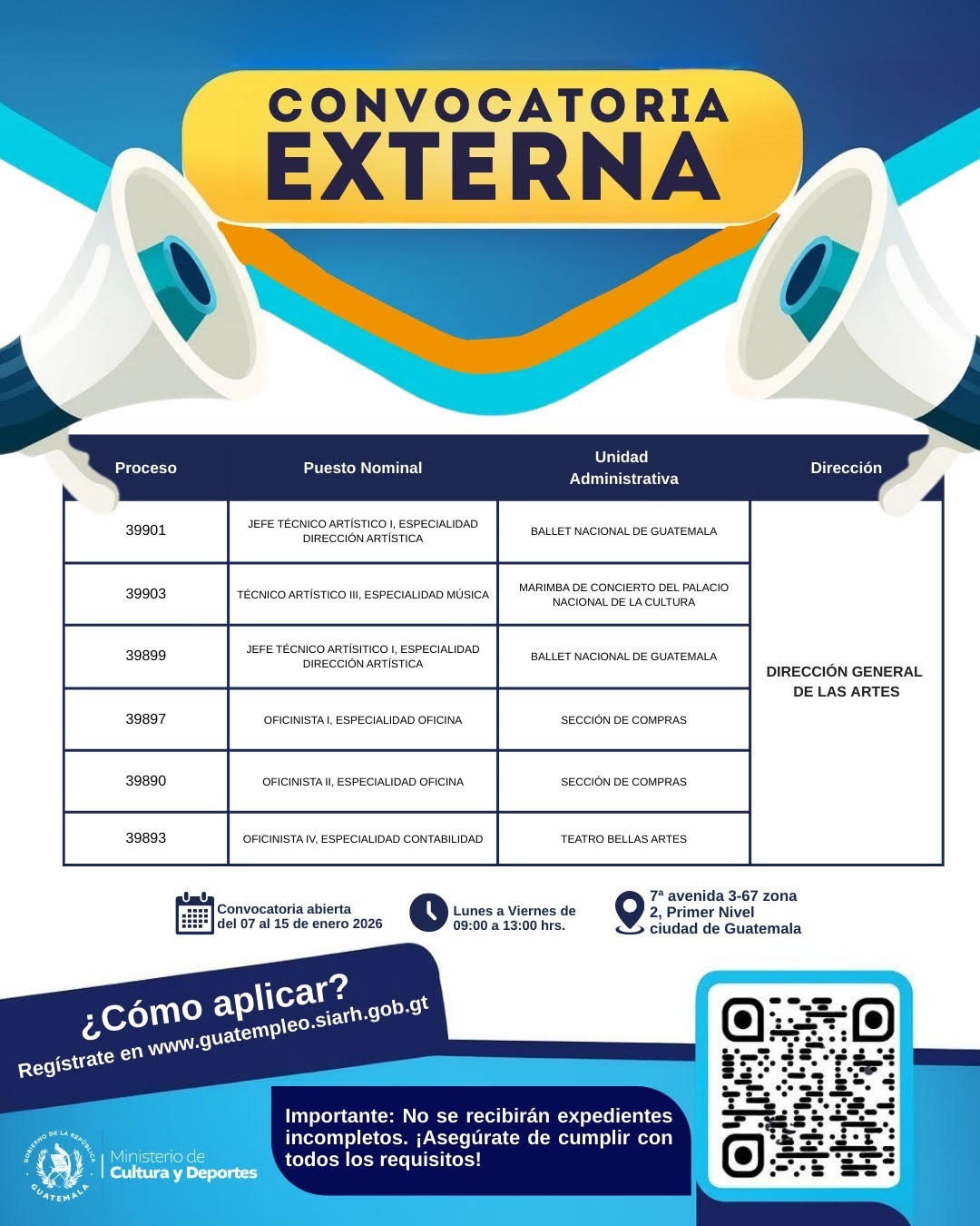 Convocatoria externa Dirección General de las Artes