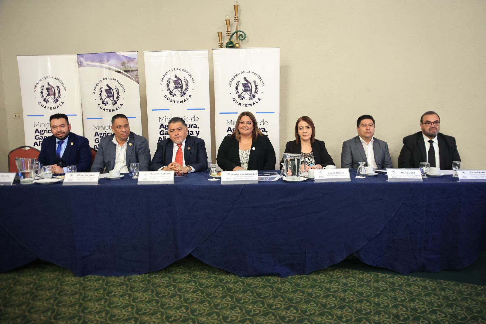En la actividad participaron el ministro Maynor Estrada; Klemen Gamboa, viceministra de Seguridad Alimentaria y Nutricional; Marissa Montepeque, viceministra de Sanidad Agropecuaria y Regulaciones; Nick Estrada, viceministro de Desarrollo Económico Rural; Elmer Salazar, viceministro Encargado de Asuntos del Petén; Ingrid Osorio, Administradora General; Mario Cano, director de Coordinación Regional y Extensión Rural, y Carlos Fuentes, el director en Funciones de Cooperación, Proyectos y Fideicomisos.