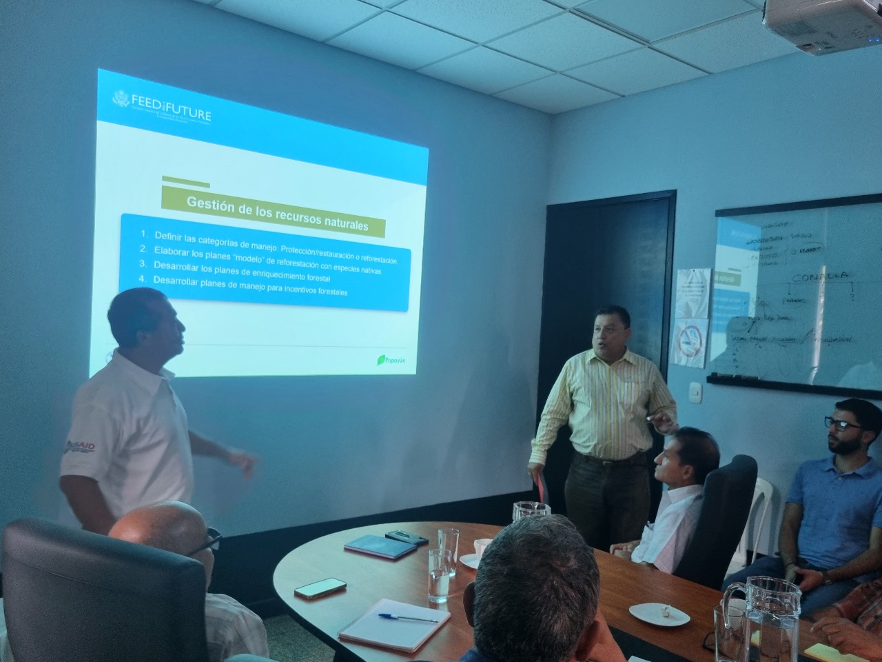 Bajo esa premisa, técnicos en cultivos agrícolas, especialistas en el manejo integrado de las cuencas hidrográficas del Ministerio de Agricultura, Ganadería y Alimentación, y personal de la Agropecuaria Popoyán, S.A. se reunieron para compartir experiencias y coordinar acciones interinstitucionales para lograr una mejor calidad de vida de las personas participantes en el Proyecto de Soluciones Innovadoras para Cadenas de Valor Agrícola.