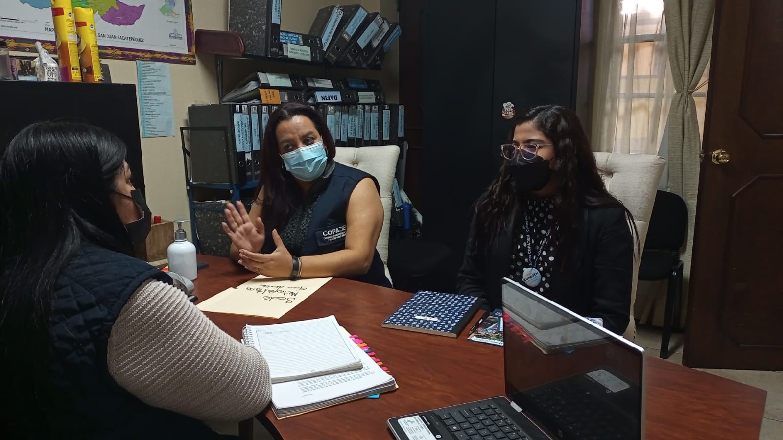 Extensionistas de la sede central de la Comisión Presidencial por la Paz y los Derechos Humanos iniciaron la cobertura de trabajo en el área metropolitana del municipio de San Juan Sacatepéquez, en donde se entrevistaron con la Licenciada Lisbeth Marisol Reyna, encargada de la Secretaría Municipal, a quien le dieron a conocer la misión y visión de la COPADEH.