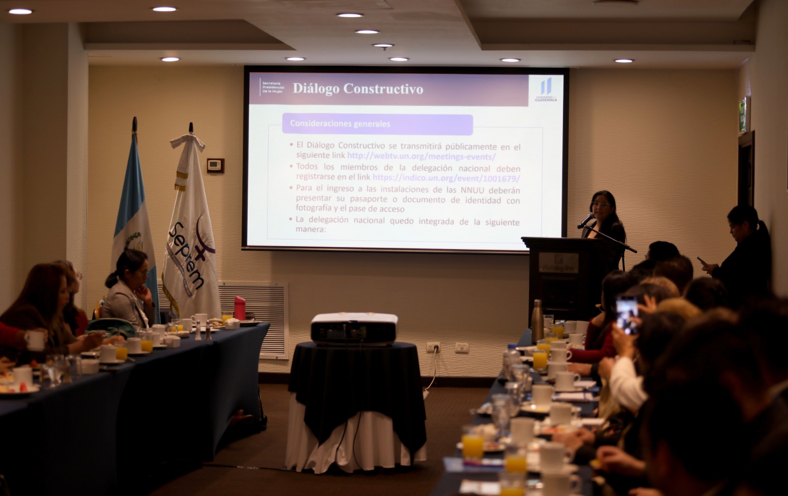 En esta ocasión, la mesa de trabajo contó con la participación de: Miguel Barreto, Coordinador Residente de las Naciones Unidas en Guatemala; Margarita Lema y Mika Kanervavuori; ambos de la Oficina del Alto Comisionado de las Naciones Unidas para los Derechos Humanos (OACNUDH); Moni Pizani, representante de ONU Mujeres en Guatemala y los servidores públicos que viajarán a esta convención que se realizará la próxima semana en Ginebra, Suiza.
