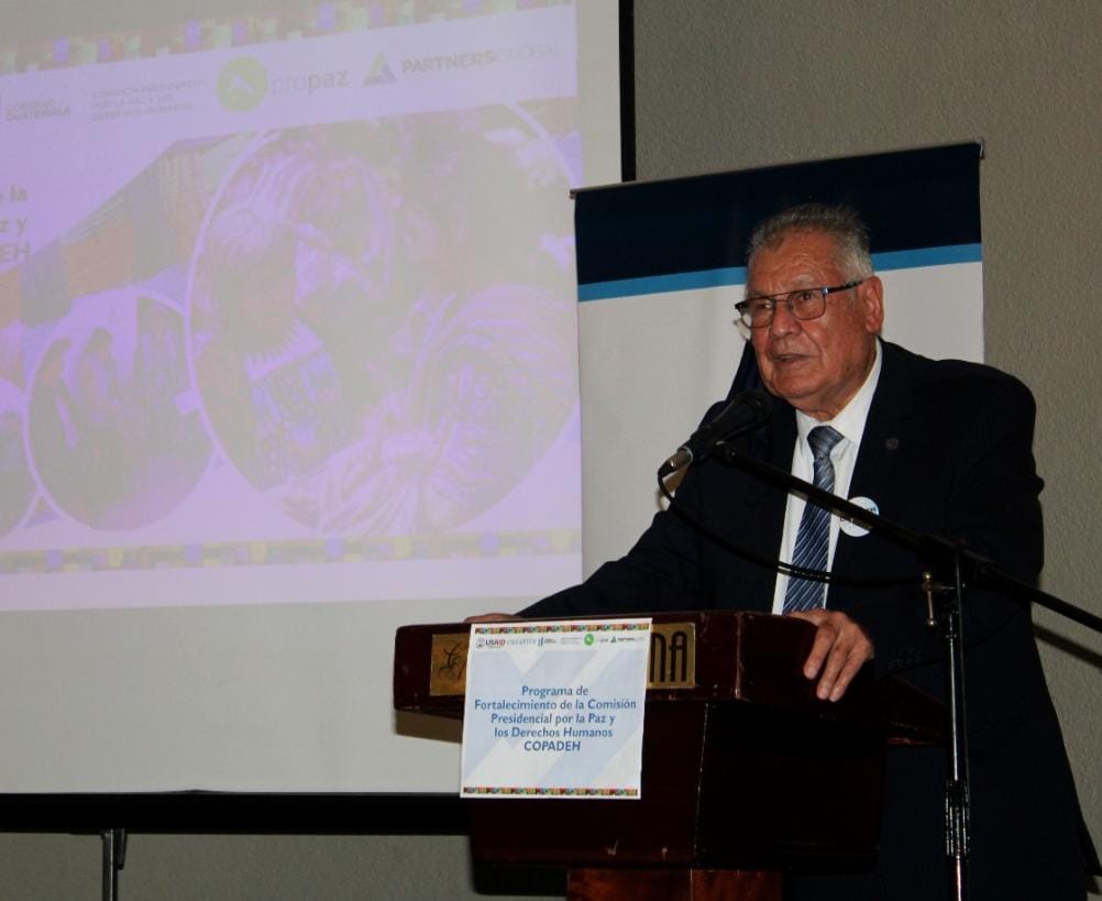 Nos congratula tener un memorando de entendimiento y una excelente relación con COPADEH. Manifestamos nuestra felicitación a su Director Ejecutivo, al asesor presidencial para prevenir la conflictividad y al equipo técnico, por los avances que han tenido como institución para atender los tres temas sustantivos, que son la vigilancia de los derechos humanos, la paz y la atención a la conflictividad”, manifestó Barker, durante la inauguración del programa.