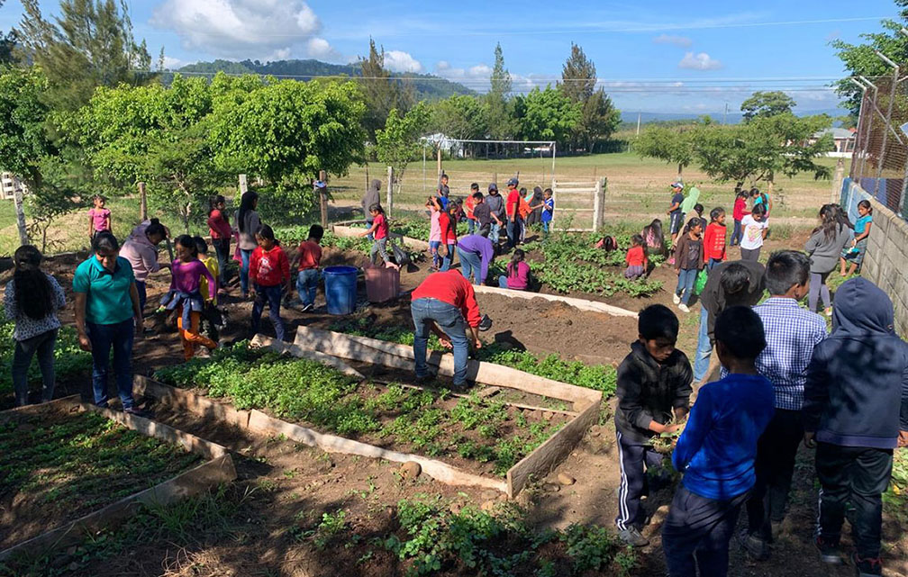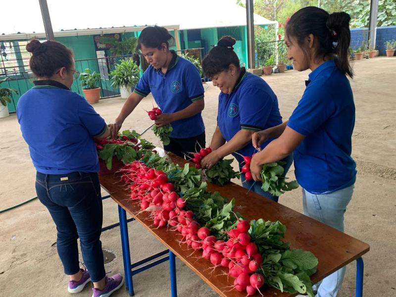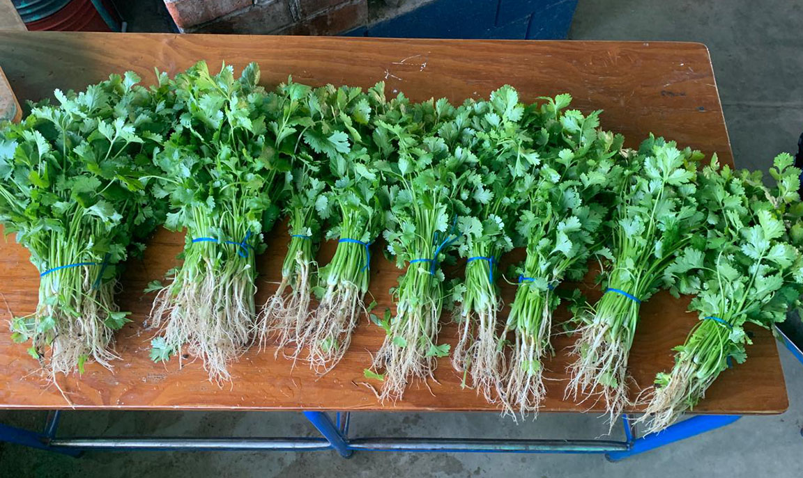 Cosechan rábano y cilantro en huerto escolar de Quiché