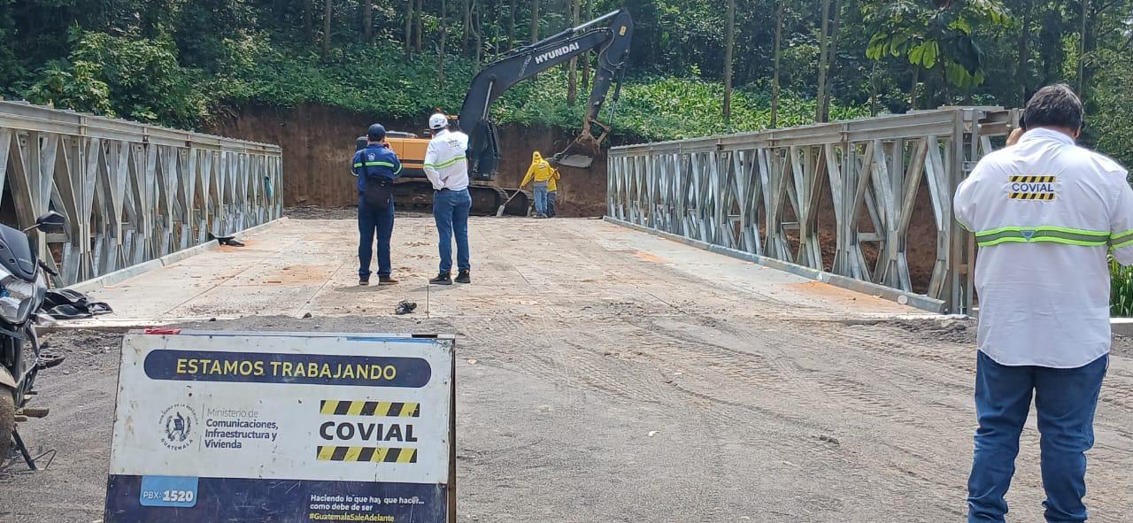 Gracias a la instalación del puente metálico de 21 metros, a cargo de la Dirección General de Caminos, y a los trabajos complementarios de Covial, pronto se habilitará el paso temporal que devolverá la conectividad a las comunidades de Santa Cruz Muluá, Retalhuleu y Zunil, Quetzaltenango.